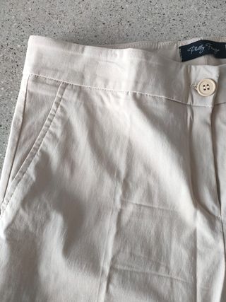 Pantaloni donna Philly Firenze modello regular tasche alla francese colore beige taglia 42, tasche a filetto sul retro, piega stirata.