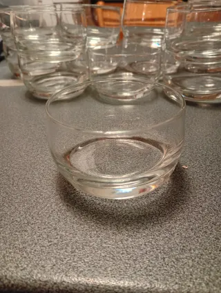 Ciotolina in vetro, perfetta per servire macedonie o dessert. - Design elegante con decorazioni rosse. - Materiale: vetro trasparente.