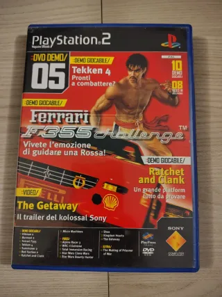 DVD ufficiale per PlayStation 2 con demo giocabili e video. - DVD DEMO 05 - Demo Giocabile: Tekken 4 - Demo Giocabile: Ferrari F355 Challenge - Demo Giocabile: Ratchet and Clank - Video: The Getaway - Altre demo: Hitman 2, Burnout 2, Summoner 2, Red Faction 2, Micro Machines, Alpine Racer 3, WRC II Extreme, Total Immersion Racing, Star Wars Clone Wars, Star Wars Bounty Hunter - Video extra: Kingdom Hearts, Shox - Extra: The Making of Prisoner of War