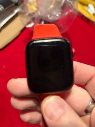Smartwatch Apple Watch Series 7 con cassa da 45mm. - Cassa in alluminio. - Cinturino in silicone rosso. confezione originale, funziona perfettamente, con normali graffi da usura su schermo e corona dovuti al normale utilizzo, come da foto