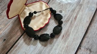 ✨ Collana vintage importante con grandi perle in cristallo nero sfaccettato, design scenografico ed elegante ✨ Firma presente sulla chiusura: BUTLER & WILSON, storica maison inglese di bigiotteria di alta qualità ✨ Lunghezza collana: circa 35 cm + 7 cm di catenella di prolunga con goccia finale ✨ Condizioni: buone condizioni generali; presenti lievissimi micro-scoli su alcune perle, visibili solo da vicino e non percepibili al tatto (vedi foto macro) ✨ Collana elegante, perfetta per sera, cerimonia, outfit retrò o collezione Butler & Wilson