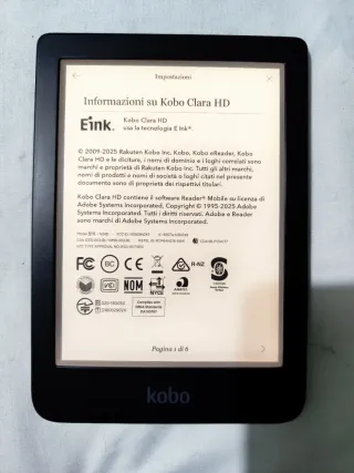 Kobo Clara HD funzionante con schermo Senza righe o graffi touchscreen Senza problemi. Il tasto di accensione / standby è stato stampato in 3d. No scatola No alimentatore no cavi