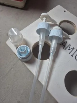 Set di erogatori per detersivi Amway. - Materiale: plastica trasparente e bianca. - Design con beccuccio a pompa per immersione. - Erogatore con salvagoccia