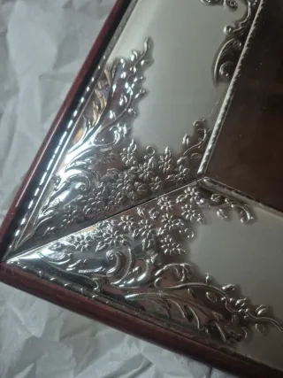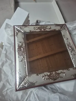 Elegante specchio Made in Italy da parete con una cornice finemente lavorata. Un pezzo che aggiunge un tocco di classe a qualsiasi ambiente. - Cornice in argento con dettagli decorativi. - Superficie in specchio.