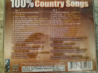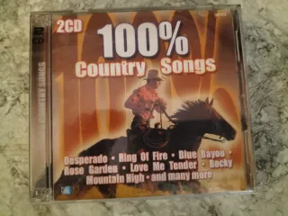 Doppio CD di musica country. - Titolo: 100% Country Songs - Include brani come Desperado, Ring Of Fire, Blue Bayou, Rose Garden, Love Me Tender, Rocky, Mountain High e molti altri.