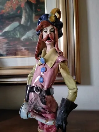 Bellissima statua degli anni 70, in ceramica raffigurante un moschettiere, proveniente dalla sapiente manifattura delle ceramiche di Mazara del Vallo, in Sicilia. Dettagli colorati e vivaci. La statua è in ottime condizioni.