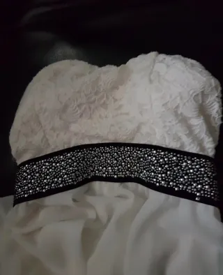 Elegante abito da cerimonia, perfetto per occasioni speciali. Indossato una sola volta, è come nuovo. - Corpetto in pizzo leggermente imbottito - Cintura decorata con perline. .