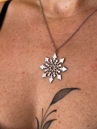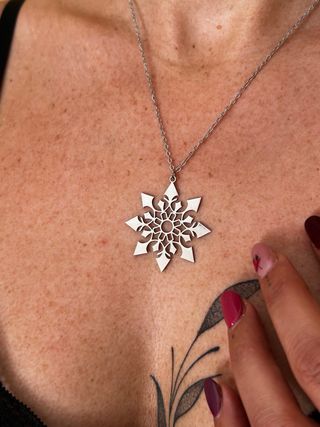 Elegante collana con ciondolo a forma di fiocco di neve. - Materiale: acciaio. - Design intricato e raffinato.
