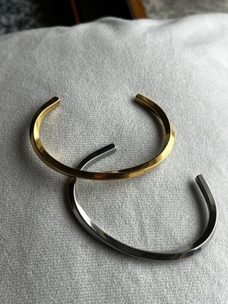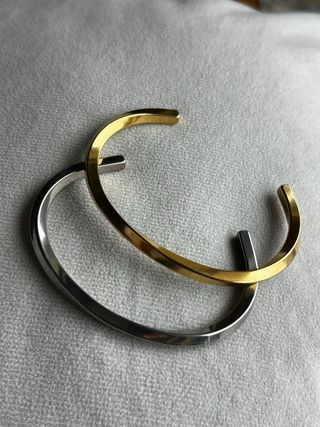 Elegante set di due bracciali dal design minimalista. - Realizzati in acciaio inossidabile. - Finitura lucida. - Stile moderno e versatile.