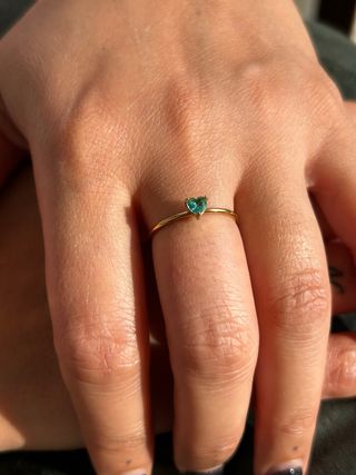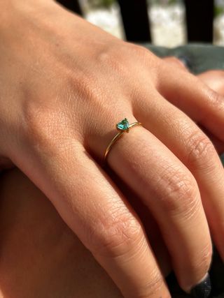 Delicato anello con pietra a forma di cuore color verde acqua e montatura dorata. - Design a cuore - Pietra color verde acqua - Montatura color oro