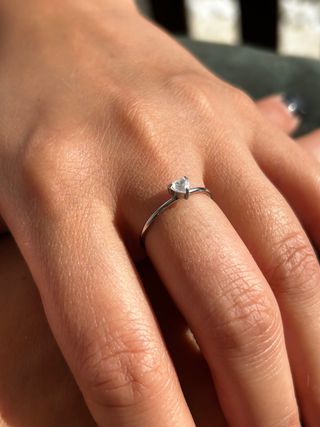 Elegante anello solitario con un design a cuore. Realizzato in acciaio con finitura argento. - Pietra a forma di cuore. - Design minimalista e raffinato.