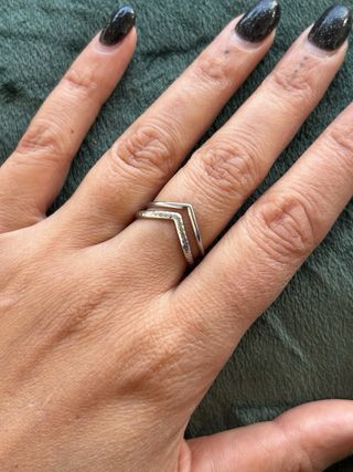 Elegante anello a doppia punta con finitura in acciaio. Il design a V lo rende un accessorio versatile. - Materiale: Argento e acciaio - Design: Punta a V