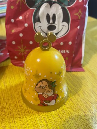 Campanella a tema Disney con il personaggio di Brontolo. Un simpatico oggetto da collezione. presente sacchetto originale. - Design a forma di campanella. - Raffigurazione di Brontolo. - Decorazioni a tema natalizio con fiocchi di neve e stelle.