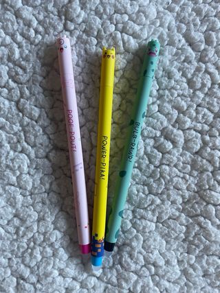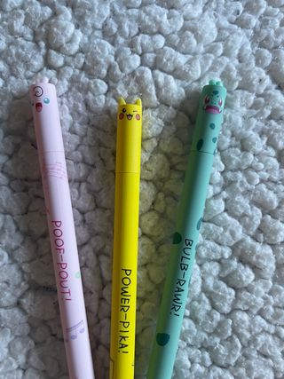Set di 3 penne cancellabili a tema Pokémon, simili al marchio Legami. Perfette per gli appassionati. compatibili con ricariche Legami. attenzione! non è un prodotto originale Legami! perché l’azienda non ha mai prodotto penne con questo tema! - Design ispirato ai personaggi Pokémon. - Inchiostro cancellabile per correzioni pulite. - Ideali per la scuola o l'ufficio.