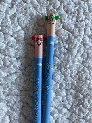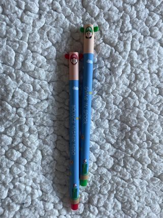 Set di due penne cancellabili a tema Super Mario, simili al design Legami. Perfette per gli appassionati del celebre videogioco. compatibili con ricariche inchiostro Legami. attenzione! non è un prodotto originale Legami! perché l’azienda non ha mai prodotto penne con questo tema! - Design ispirato a Mario e Luigi. - Inchiostro cancellabile. - Decorazioni a tema Super Mario.