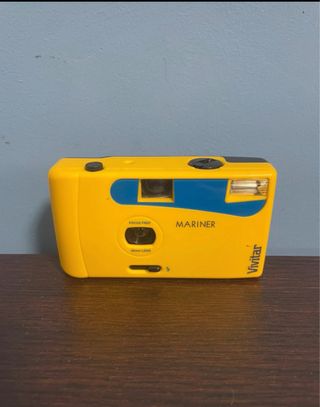 Fotocamera analogica Vivitar Mariner gialla/blu - Obiettivo da 35mm. - Design focus-free. non funzionante, vendo come oggetto vintage decorativo