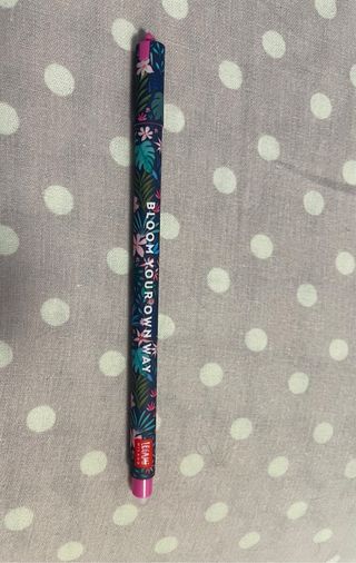 Penna della Legami con un bellissimo design floreale, fuori produzione. - Fantasia Flora con fiori e foglie tropicali. - Scritta Bloom your own way sul fusto. - Tappo e puntale rosa. - Marchio Legami visibile.