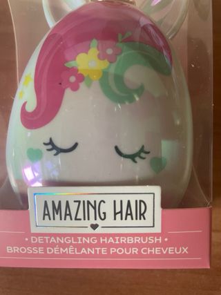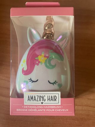 Spazzola districante a forma di unicorno, ideale per capelli. - Design a forma di unicorno con dettagli colorati. - Manico ergonomico per una presa comoda. - Setole delicate per districare i nodi senza spezzare i capelli.