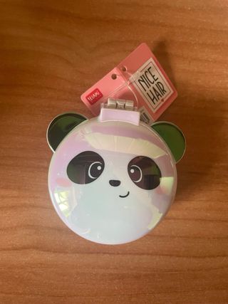 Spazzola per capelli a forma di panda, con un design simpatico e colorato. Perfetta per portare un tocco di allegria nella routine quotidiana. - Forma di panda - Dettagli in verde - Rifiniture iridescenti