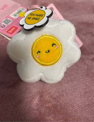Portachiavi a forma di fiorellino in morbido plush, con un simpatico faccino sorridente. - Design a forma di fiorellino. - Materiale: plush morbido. - Dettaglio: scritta You make me smile sul ciondolo.