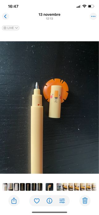 Penna cancellabile con un simpatico design a forma di leone. fuori produzione. - Cappuccio con dettagli del leone. - Colore giallo chiaro.
