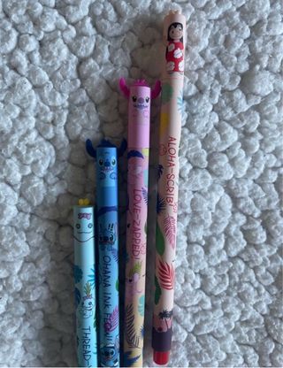 set multiplo composto da -4 penne set lilo e stitch simil Legami - 2 Penne set Miracolous simil Legami - 3 penne set Harry Potter simil Legami -set da 4 penne hello kitty - matita impilabile originale Legami limited edition calendario avvento 2025