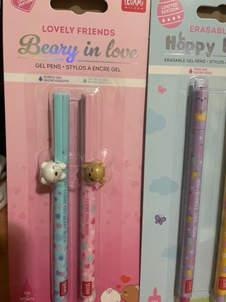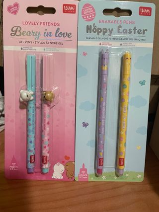 Vendesi due set di penne Legami in edizione limitata. - Set Beary in love con 2 penne gel (punta 0.5 mm). - Set Happy Easter con 2 penne cancellabili (punta 0.7 mm). - Design a tema orsetti e Pasqua.