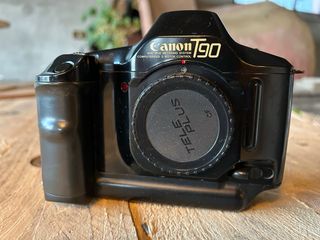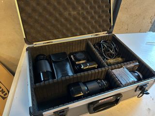 Valigetta per fotocamera con accessori. - Fotocamera Canon T90. - Obiettivo 70-210mm Canon - Obbiettivo 040-50mm Canon - Altro obbiettivo - Flash con relativa custodia in pelle