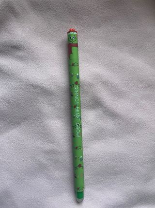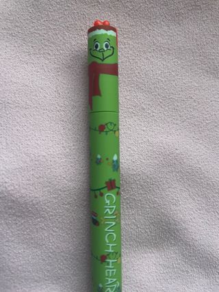 Penna cancellabile con un simpatico design a tema Grinch, perfetta per gli amanti del personaggio. - Design Grinch con cappello e sciarpa. - Decorazioni natalizie sul fusto. - Scritta GRINCH HEART sul fusto.