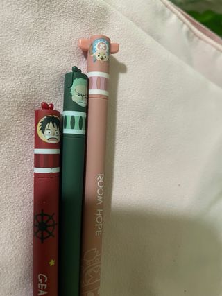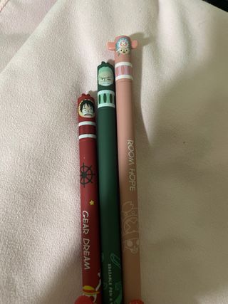 Set di 3 penne cancellabili a tema One Piece. compatibile con ricariche Legami anche se prodotto non originale del brand Legami. - Design ispirato ai personaggi di One Piece (Luffy, chopper, Zoro) - Penne cancellabili, ideali per appunti e disegni. - Colori vivaci e dettagli curati.