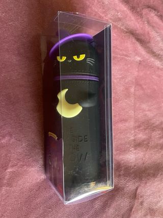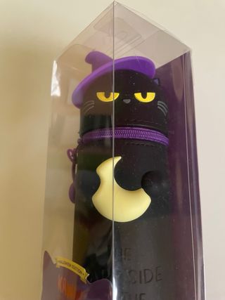 Astuccio a tema Halloween, a forma di gatto nero con cappello da strega viola. - Design a tema Halloween. - Dettagli a forma di luna. - Edizione limitata Halloween.