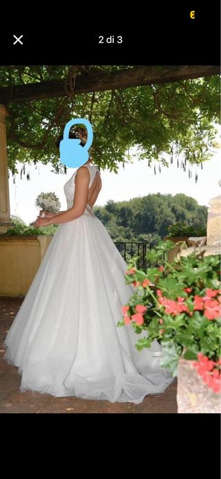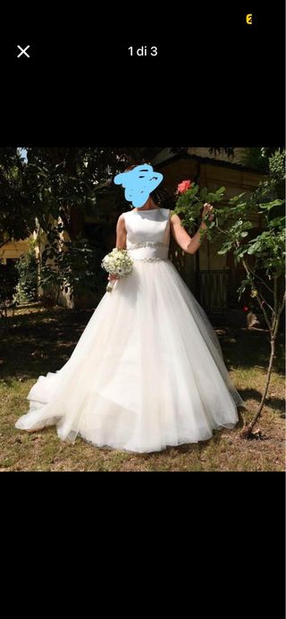 Elegante abito da sposa con gonna ampia, stile principessa. Perfetto per un matrimonio da favola. - Gonna in tulle - Corpetto in raso - Dettagli preziosi sul corpetto.