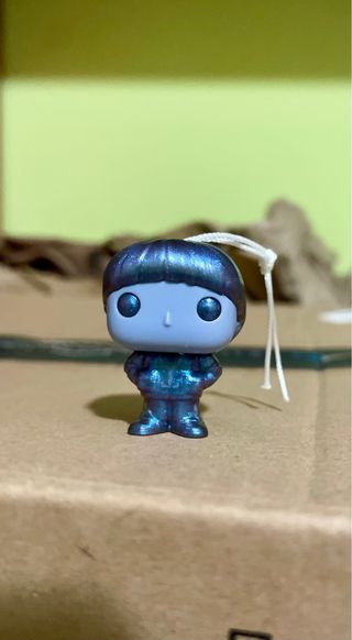 Mini figura Funko Pop! da una sorpresa Kinder Joy. La figura ha sido pintada a mano con un acabado iridiscente. - Figura coleccionable. - Pintura iridiscente azul y morada.