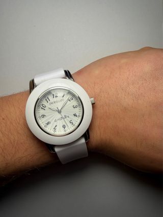 Orologio Morellato Colours con cassa, quadrante e cinturino di colore bianco e finiture in argento, in perfette condizioni, resistente all'acqua 3АТМ, sostituire la batteria.