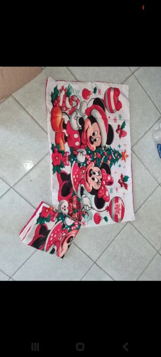 Federa con stampa natalizia di Topolino e Minnie. - Personaggi Disney. - Motivo a tema natalizio.