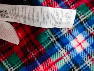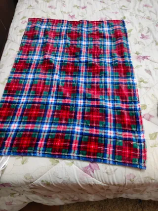 Morbida copertina in pile con fantasia a quadri. - Fantasia a quadri rossa, blu e verde. - Tessuto in pile soffice al tatto.