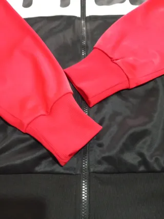 Felpa sportiva Nike da uomo, colore rosso. Presenta un piccolo difetto sulla manica. - Logo Nike ricamato sul petto. - Zip frontale. - Polsini e fondo elasticizzati.