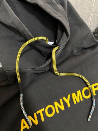 Felpa con cappuccio Antony Morato di colore nero. difetto sul retro (ultima foto) - Logo Antony Morato a contrasto sul davanti. - Tasca a marsupio. - Cappuccio con laccetti