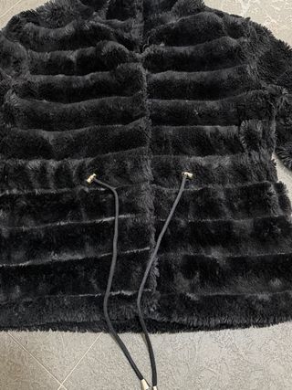 Elegante pelliccia da donna, perfetta per completare ogni outfit. - Materiale morbido e caldo. - Design con collo alto. - Chiusura frontale. - Coulisse in vita per regolare la vestibilità. - Maniche ampie. - Manca un bottone.