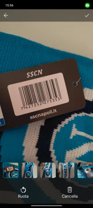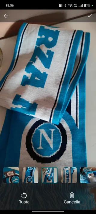 Sciarpa ufficiale SSC Napoli. - Design a righe azzurre e bianche. - Logo SSC Napoli presente.