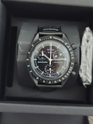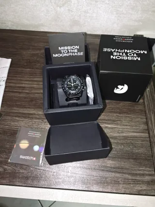 Orologio Swatch Mission to the Moonphase della collezione Bioceramic Moonwatch. - Cassa in bioceramica nera. - Quadrante nero con dettagli. - Cinturino nero. - Scatola originale inclusa.