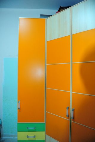 VENDO PER TRASFERIMENTO URGENTE IN ALTRA REGIONE D'ITALIA (TUTTO PARI AL NUOVO E TUTTO PERFETTO) misure: ALTEZZA 2 MT.E 60 CM. PROFONDITà 60 CM LARGHEZZA CENTRALE DELLE 2 PORTE CHIUSE 102 CM. LARGHEZZA PORTA LATO SINISTRO 50 CM. (PROFONDITà PARTENDO DA ANGOLO MURO A FUORI ALLE 2 PORTE CENTRALI 128 CM. ( ci sono anche faretti all'interno ) è POSSIBILE ANCHE VISIONARE PRIMA DI COMPRARE. ( PER CONTATTO WHATSAPP- 3476412132 ) - Ante arancioni e pannelli in legno. - Cassetti colorati: verde e giallo. - Maniglie argentate.
