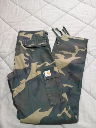 Pantaloni Carhartt con fantasia mimetica. Lunghezza pantalone cm 104 - Fantasia militare. - Tasche cargo. - Coulisse alle caviglie.