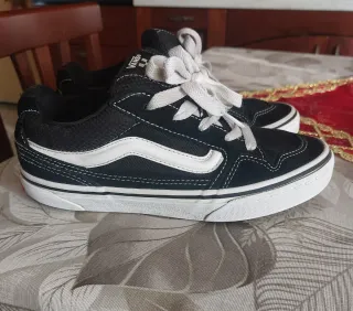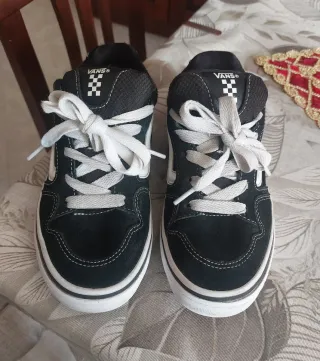 Scarpe Vans nere con banda laterale bianca, taglia 35. - Chiusura con lacci bianchi. - Logo Vans sulla linguetta e sul tallone.