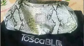 Borsa da donna con un design elegante e moderno. Usata una sola volta, è nuovissima. Borsa spalla, con scomparti interni di cui uno con chiusura lampo. Sempre al suo interno è presente uno specchietto a forma di cuore. - Texture effetto pitone. - Dettaglio logo frontale.