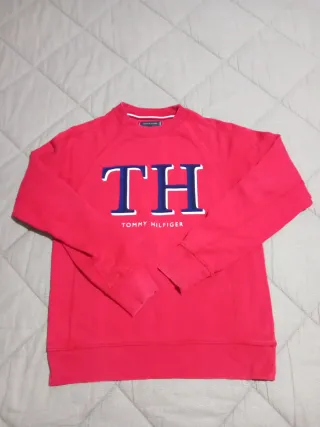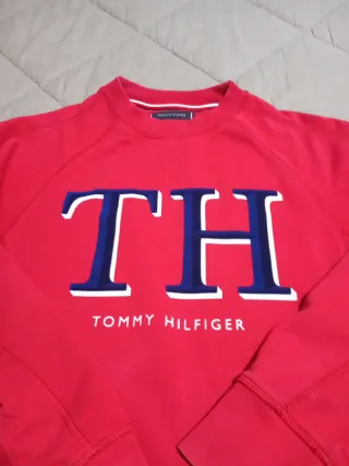 Felpa girocollo Tommy Hilfiger di colore rosso.tessuto cotone misura torace guardare foto lunghezza cm 66 - Logo TH frontale. - Scritta TOMMY HILFIGER sotto il logo.