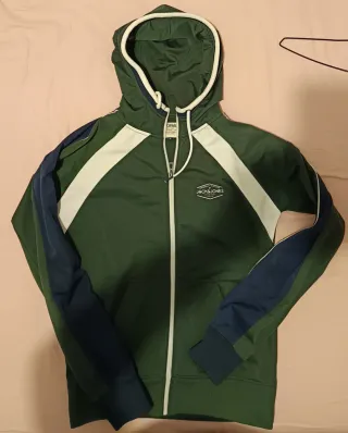Felpa con capucha de Jack & Jones. - Diseño con paneles laterales blancos y detalles en azul marino. - Cierre de cremallera frontal. - Puños y bajo elásticos.