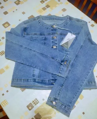 Elegante giubbino in denim da donna, perfetto per ogni occasione. - Chiusura con bottoni. - Collo rotondo. - Tasche sul petto. - Polsini con bottoni.