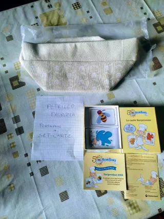 Set composto da un porta pane e un set di carte Le carte Sorpresine di Mulino Bianco. Ideale per collezionisti o per un regalo. - Porta pane in tessuto. - Set carte Le carte Sorpresine con giochi. - Prodotto Mulino Bianco.