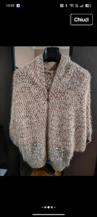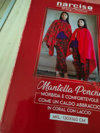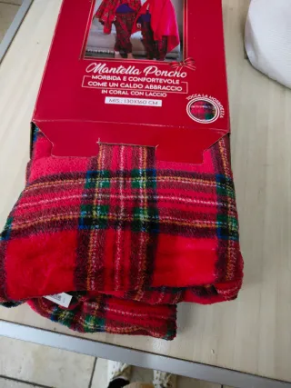 Morbida mantella poncho Narciso, perfetta per le giornate più fredde. Un capo confortevole e caldo. - Design a quadri rosso e multicolore. - Modello con cappuccio. - Chiusura con laccio. - Misure: 130x160 cm.
